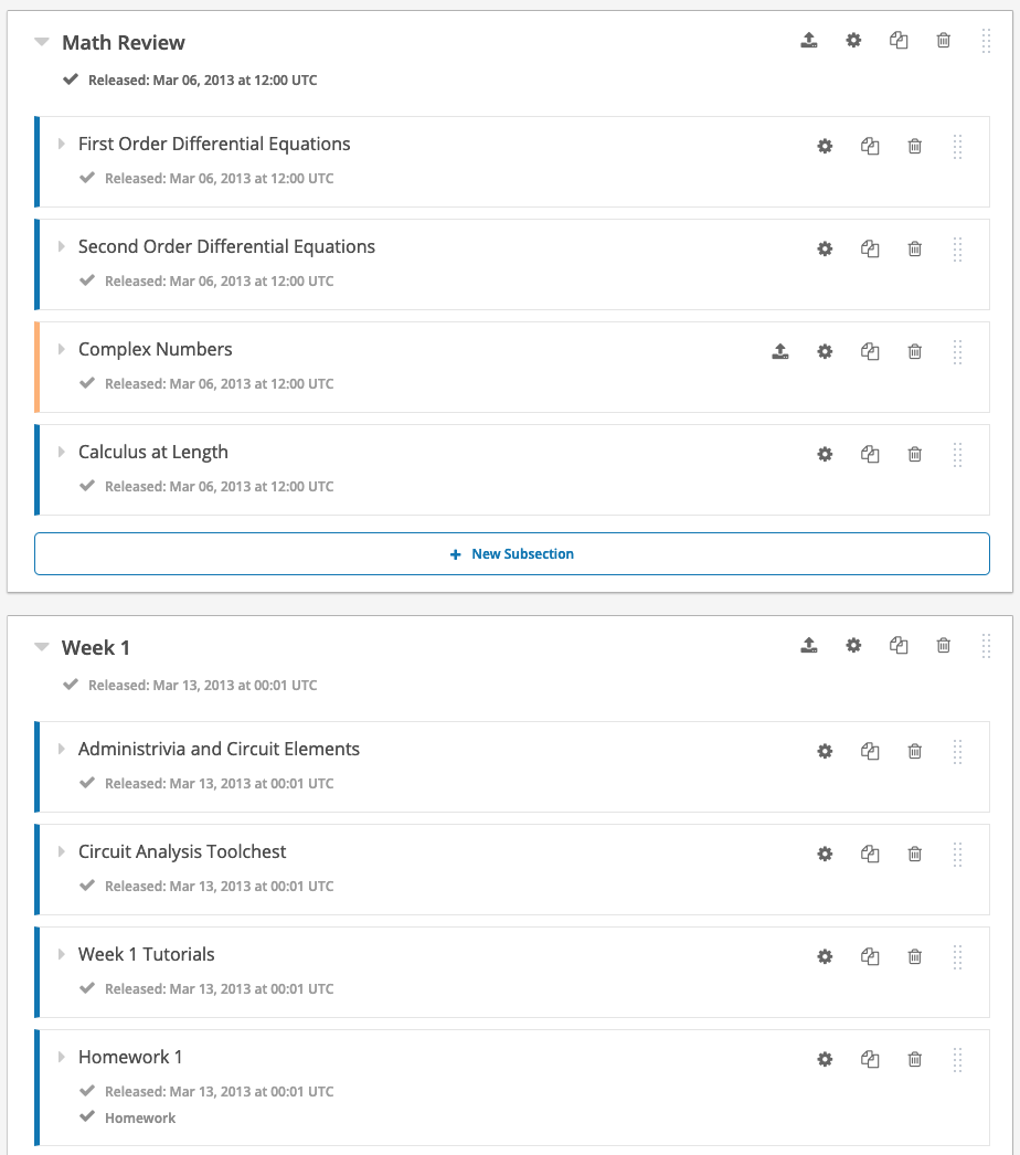 Crie e publique gradualmente secções para os seus estudantes. Não necessita de fazer tudo de uma só vez.