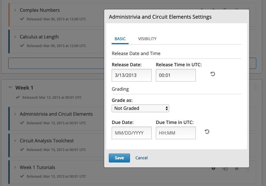 Quando terminar uma secção , defina o momento em que a quer publicar e a Studio trata do resto. Construa o seu curso gradualmente.